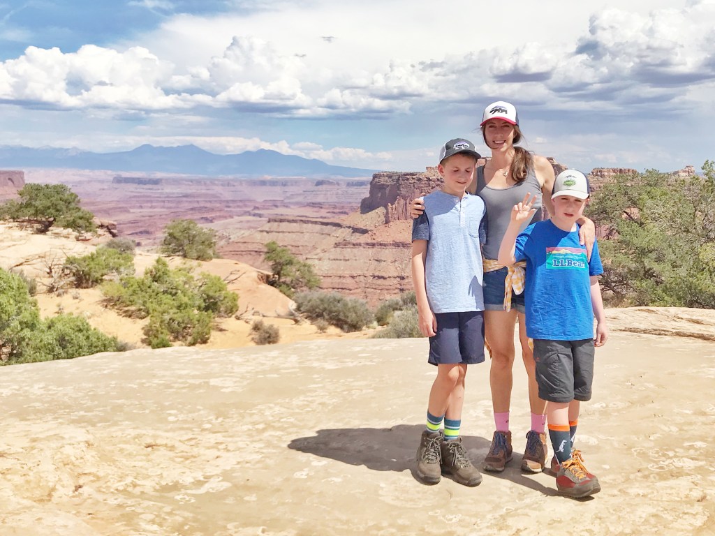 During the 20 minute drive from Arches to Canyonlands, Theo fell asleep, and Rich was oh-so-sad to stay in the air-conditioned van with him while I took the big boys to the first and only trailhead of Canyonlands that we encountered.