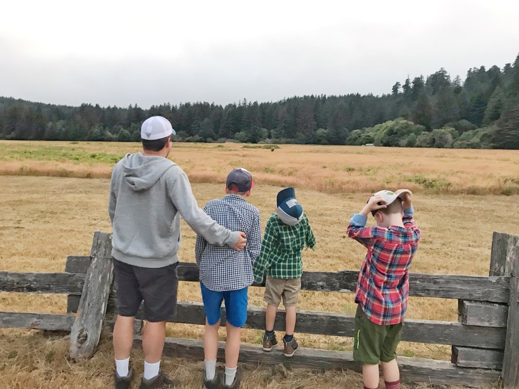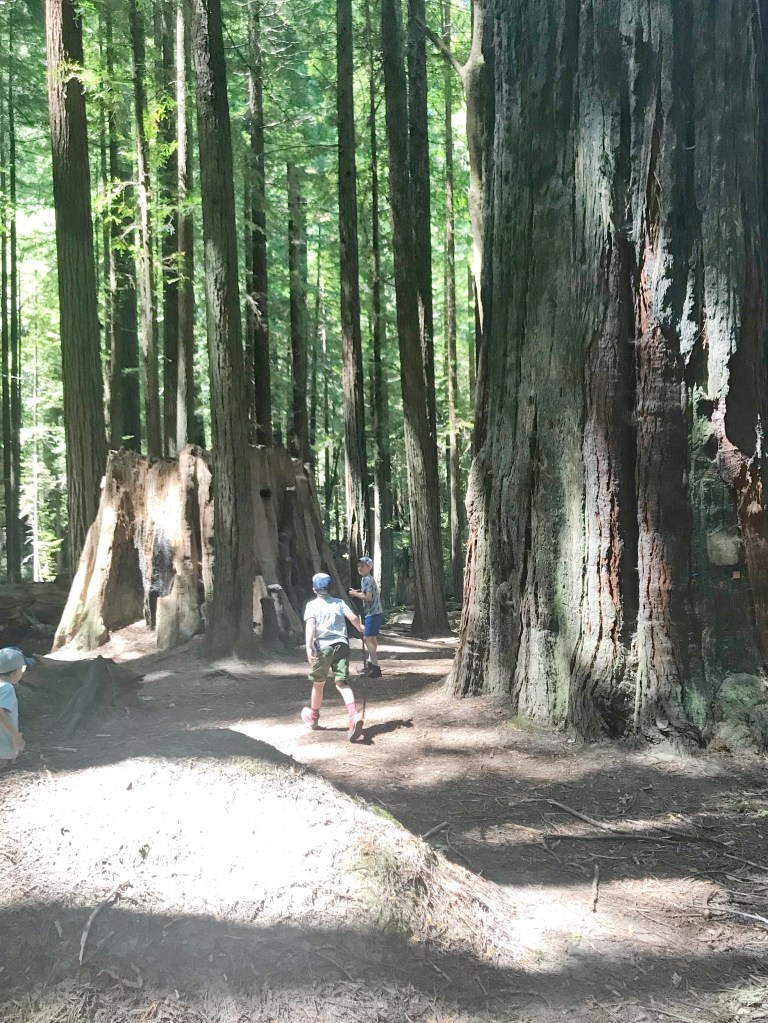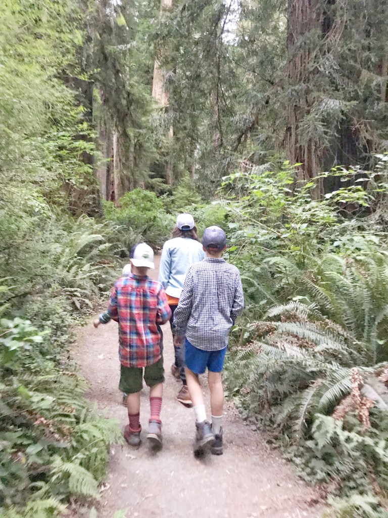 Again – we didn’t know what to expect here. We didn’t now how to budget time for it, and if we would need more than the afternoon. Of course we needed more than the afternoon, silly. We stayed in a nearby hotel, so instead of heading on over to our next destination first thing in the morning, we decided to return to a few more groves in the Redwoods before driving. It made our travel day quite a bit longer, but I’m so glad we did it. The trees needed us to come back and I needed to get some more fresh forest air. I put the boys “forest” clothes back on from yesterday, we ate breakfast, and we went back in.