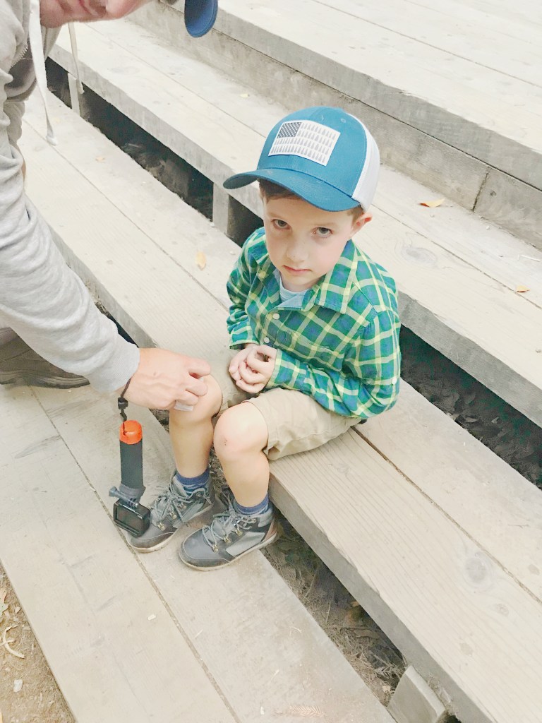 He, of course, starts to get ahead of me. I say “Finn, back by me!” He says, “Mom. Why do you keep disciplining me? I can do this.” I say back “I know you can, I’m just trying to make sure you SURVIVE it.” And he continued on like that. And I felt like our job for most of the day was to make sure Finn didn’t die. Harry tried to keep up with Finn on the baby rocks and ended up scraping his feet up kinda nasty. And after that we were all feeling a little tired – physically and mentally.