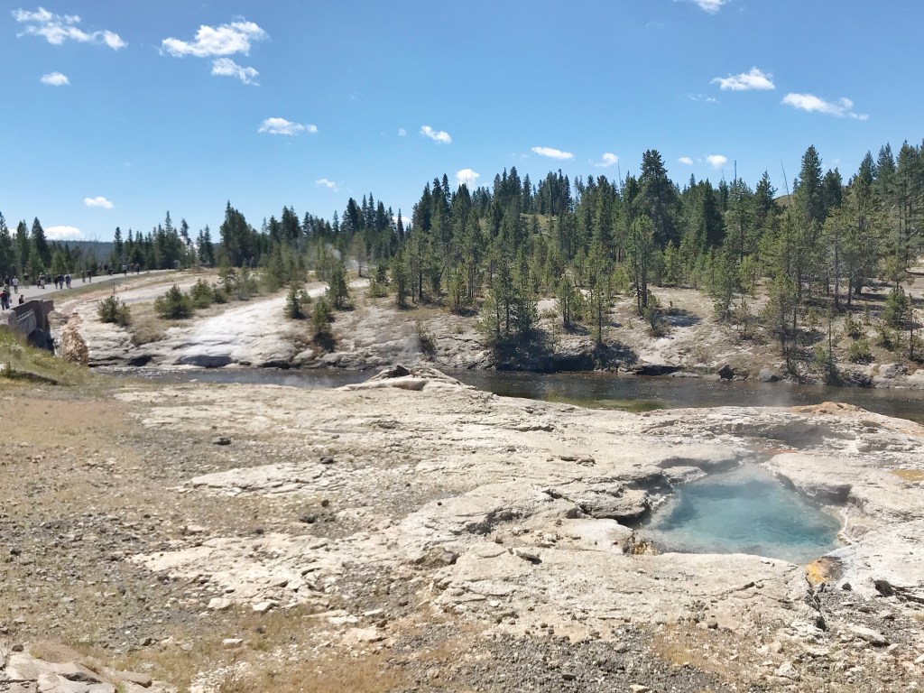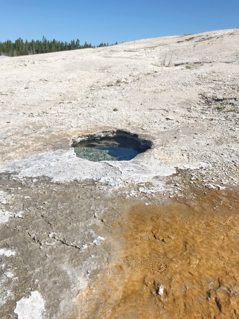 We had read on a couple of blogs that many people preferred the Grand geyser to Old Faithful. Because, they said, it put on just as good of a show and goes off just as often. We weren’t sure if we had enough time to wait for it, but it was right along the trail and everyone else was waiting. So we decided to wait as well. That’s the thing about waiting on Geysers. There is no schedule. You just have to wait and hope.