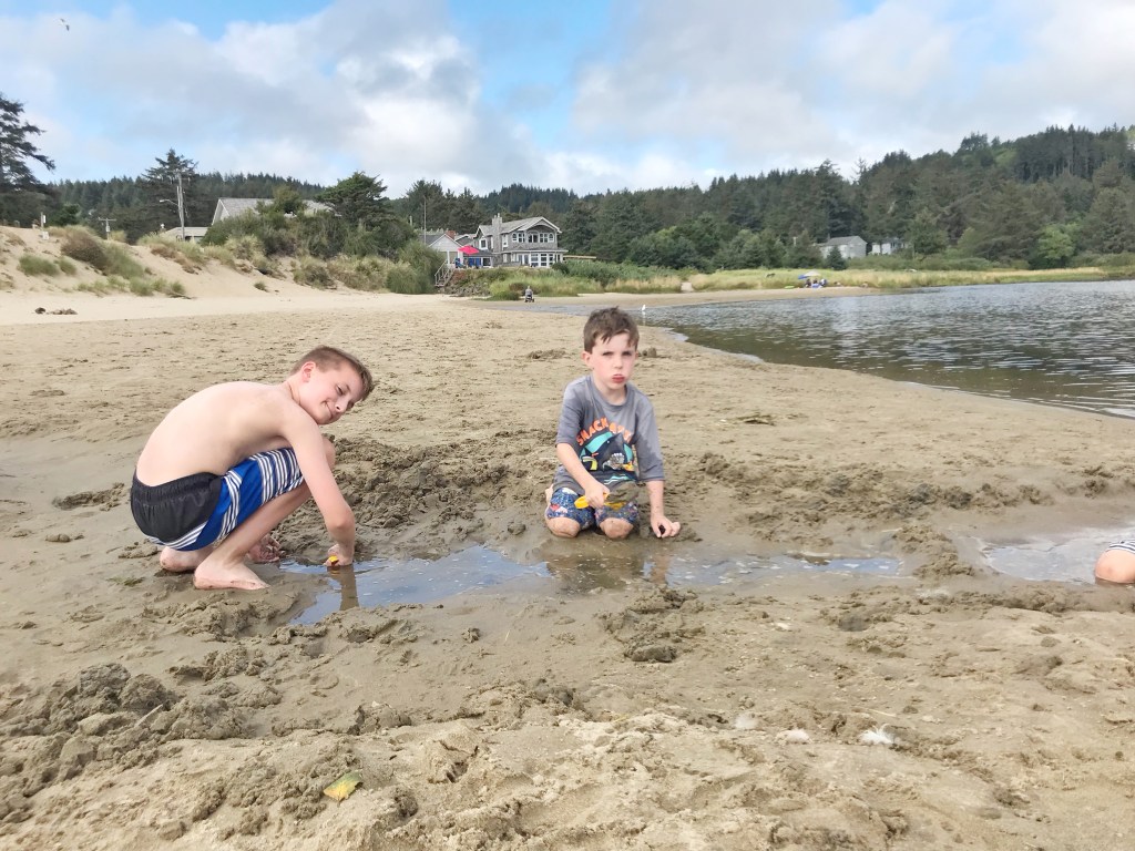 The next day, our friends took us to the most perfect beach. And our boys got their first glimpse of the Pacific Ocean. Even though it was slightly over-cast, and the ocean water was ice-bucket cold, we spent the entire day. It was so fun.