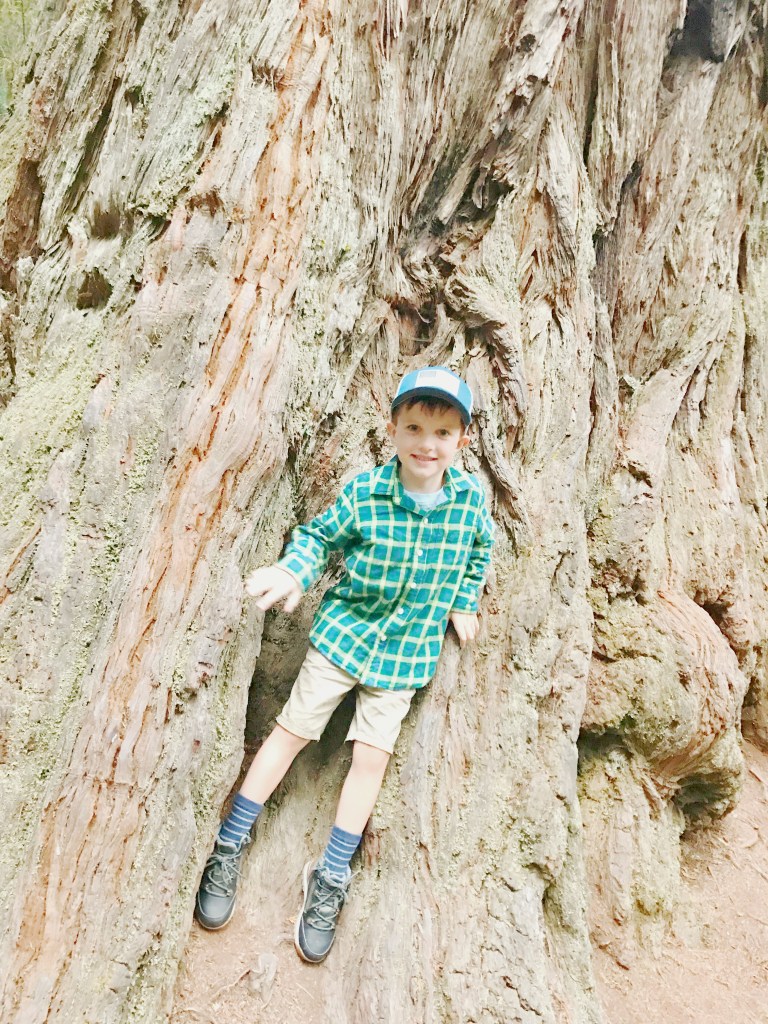So, this whole trip, he was in complete heaven. All the new outdoors sights and adventures. He saw new things and touched and smelled and learned things he didn’t know. Each time we pulled up to a new park, or grove, or trail, he would bust out of the van full speed READY. Out and taking it in and constant chatter and just going going going.