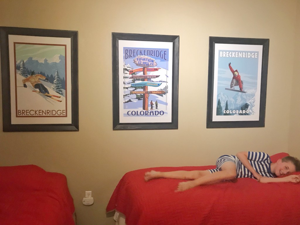 We blessedly left the dessert, and headed into the mountains. Since it’s sort of “off season” in the ski town of Breckenridge we were able to snag a two story loft apartment. Even at off-season price, this was a splurge for us. But since it was the last stop on the trip, we thought it would be perfect. And it ended up being just what we needed. A little extra space and a little extra quiet to cap off all the nights of sharing a hotel room. No one had to share a bed, so it was the perfect re-fueling two nights.